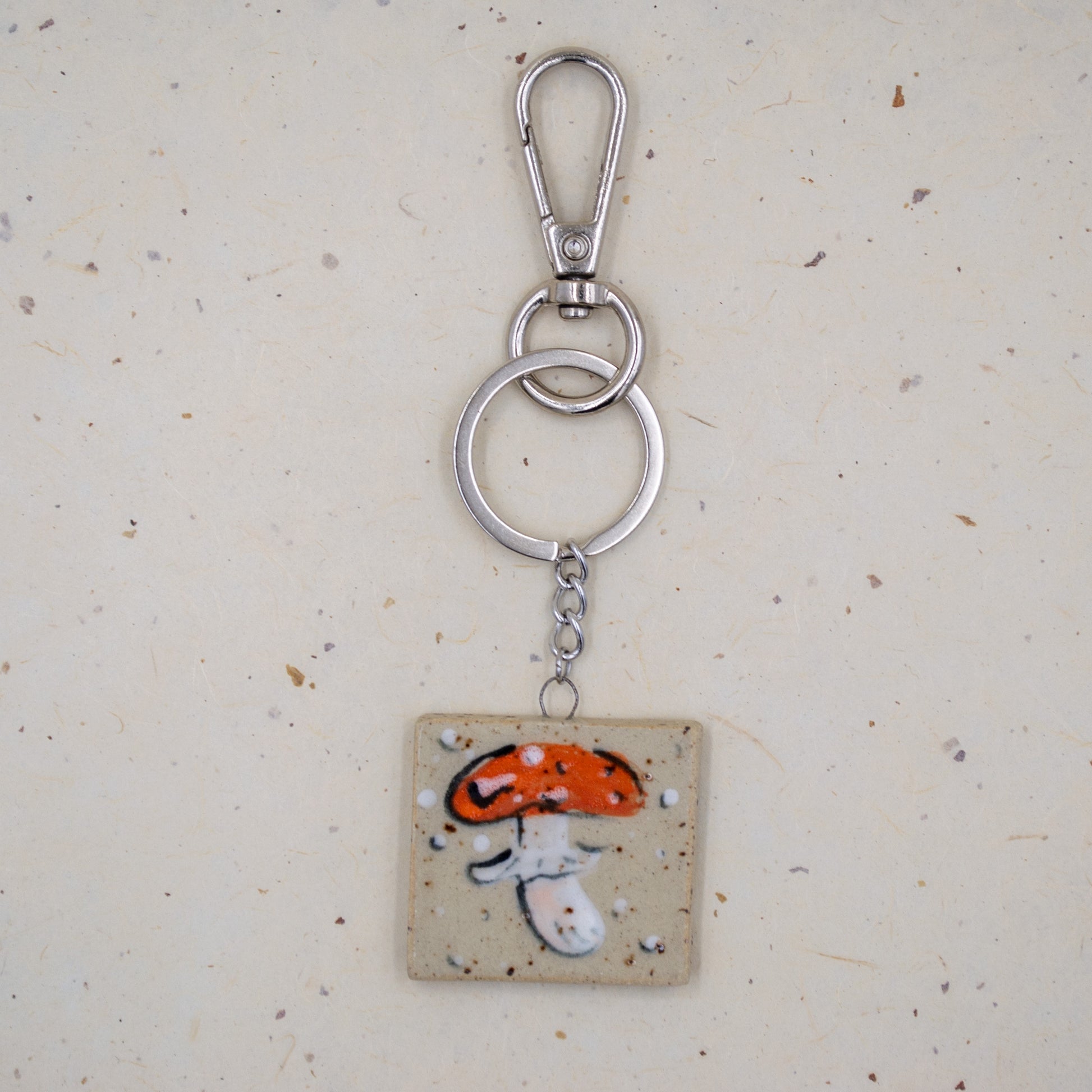 ✧ Handmade Ceramic Charm featuring a unique hand painted mushroom design.