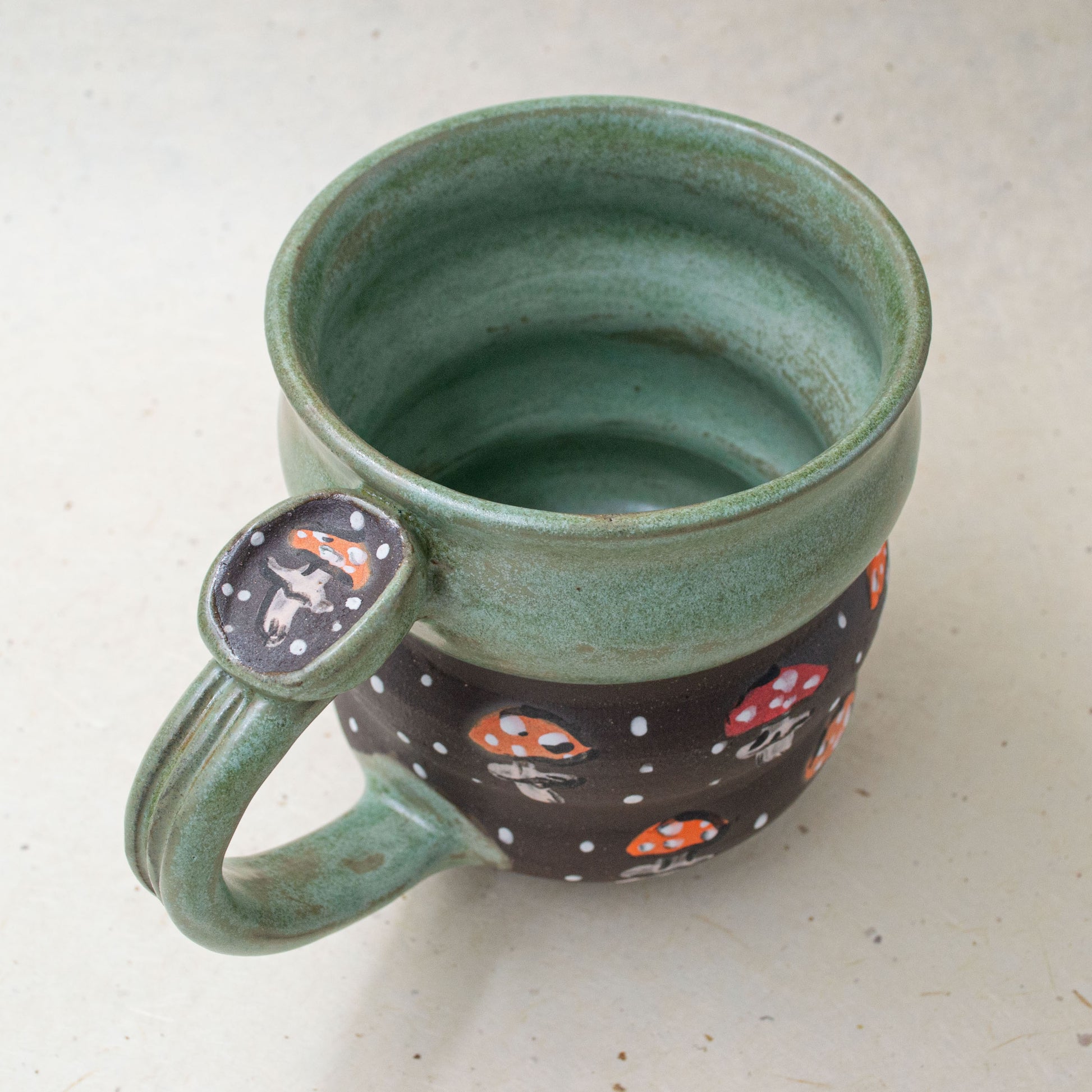 ✧ Each ceramic mug features a unique hand painted mushroom design.