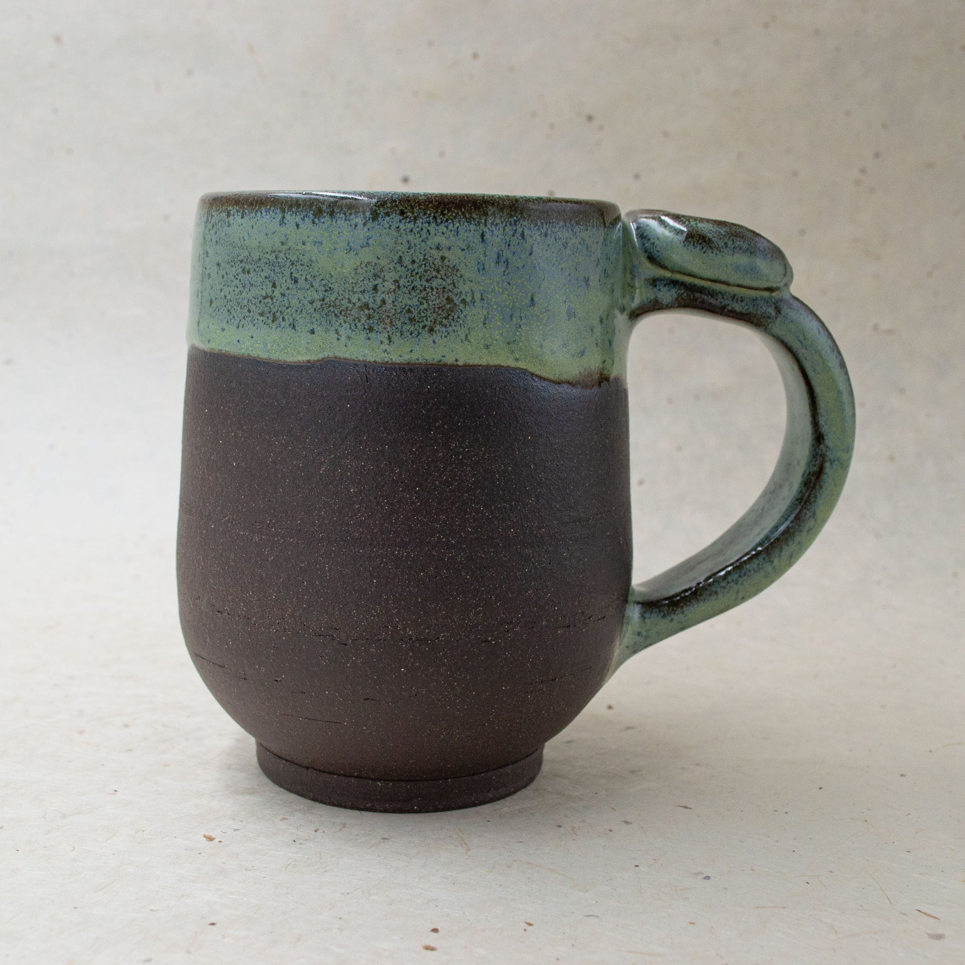 ✧ Made with dark brown stoneware, underglaze, and lined with a blue and yellow glaze